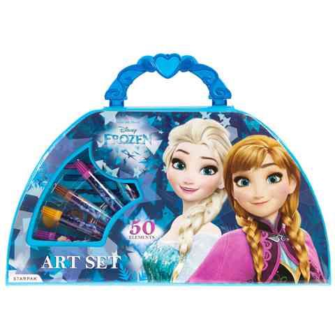 A Jégvarázs mesefilm csodaszép hercegnői, varázslatos világa, és a vicces szereplői kiváló alapanyagot nyújtanak ahhoz, hogy csodaszép rajokon elevenítsd fel a mese legizgalmasabb jeleneteit és részleteit. Ebben a nagyszerű készletben félszáz eszköz található, ami a segítségedre lesz az alkotás folyamán. Használhatsz színes ceruzákat, vagy élénk színű filctollakat és zsírkrétákat, de a legügyesebbek megpróbálkozhatnak a festésszettel is, ami ugyan a legnehezebb, de a legszebb képeket lehet általa megalkotni. Az egész készlet egy tépőzárral záródó műanyag bőröndben tárolható, így könnyen rendben tartható és hordozható is.