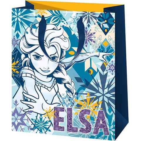 Izgalmas mintával ellátott, színes ajándéktáskán tűnik fel a Disney Jégvarázs mese egyik főszereplője, akivel a kislányok feldobhatják az ajándékozást. A közepes méretű táskában egy vagy több kisebb ajándék is elfér, melyet aztán stílusosan adhatnak át az ünnepeltnek ebbe az ajándéktáskába csomagolva. A kényelmes hordozhatóságról a kék színű szalagfül gondoskodik, amely elegáns kiegészítője a dekoratív ajándéktáskának.