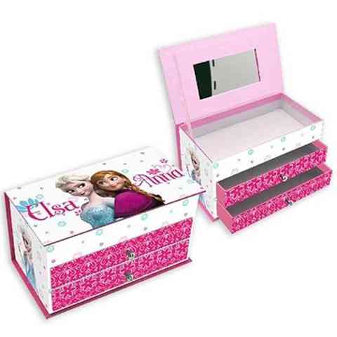 Elsa és Anna az elbűvölő testvérpár a Jégvarázs című Disney rajzfilmből mindenki számára jól ismert. Most ők lesznek azok akik az ékszertartó dobozkádat díszítik. A tárolóban minden ékszerednek külön helye lehet, így nem kell aggódnod, hogy esetleg bármi elkeveredne. A két rózsaszín fiókot édes Jégvarázs hangulatú motívumok díszítik, és egy-egy fogantyúval látták el amik segítik a kinyitását és becsukását. Az dobozka teteje könnyen felnyitható, ráadásul a fedélen egy praktikus tükör is található, így bátran nézegetheted magad az ékszerek próbálgatása közben.