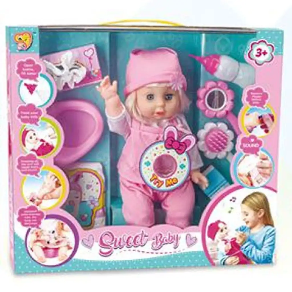 Rendkívül bájos babával lehet érdekesebb a játék a gyerekek számára hiszen ez a kedves arckifejezéssel elkészült baba egy kantáros nadrágot is kapott. A pink ruhában és sapival érkező baba mellett a szett tartalmaz különböző kiegészítőket is, melyek segítenek a gyermeknevelést élethűen imitálni a gyerekek számára. Cumisüveg, hajkefe vagy épp a bili is a szett része, a baba pedig itatható és pisilni is képes a még izgalmasabb játékélmény érdekében!