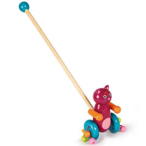 Az Oops városlakó állatai közül most Jerryvel a macskával ismerkedhetsz meg ennek a kiváló minőségű, fából készült tologatós játéknak a jóvoltából, ami már évtizedek óta szerepel a kisgyerekek kedvencei között. A kiváló minőségű faanyagból készült játék könnyen kezelhető, könnyű és tartós, hogy a gyermeket elkísérje az első lépésektől végig a kisdedkor során. Az egy éves kortól ajánlott játékkal öröm a kicsiknek a jövés-menés. A kis gyerekek élvezettel figyelik, ahogy a kedves figura kattog és zörög mozgás közben.