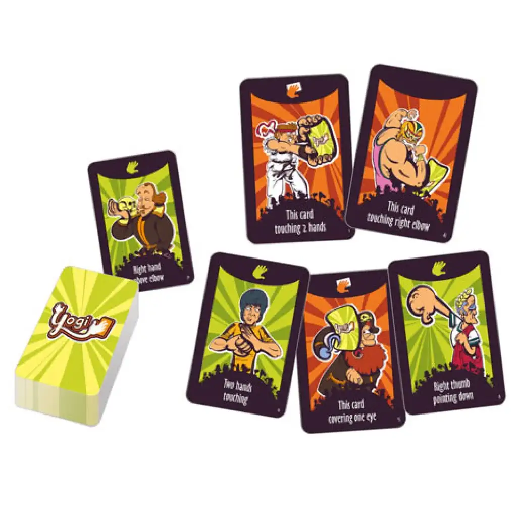 A Jógi kártya nem éppen az a klasszikus játék, amit egy asztal mellett ülve egyszerűen lejátszhatunk, mert bár a szabályok egyszerűek, és a kártyákon lévő feladatok sem túl bonyolultak, de ha már a harmadikat kell megoldanunk úgy, hogy közben másik kettőre is figyelni kell, akkor már lesznek gondod. Ez a lap csak annyit kér, hogy érjen hozzá a kisujjam, de a másik miatt az egyik kezemnek a másik alatt kell lennie, és amúgy is egyensúlyozok már egy lapot a fejemen, szóval nem is olyan egyszerű a helyzet. A Jógi nevű partijátékban az nyer, aki a legtöbb kártyát tudja felhúzni, és közben tartani tudja a korábbi kártyákat is.