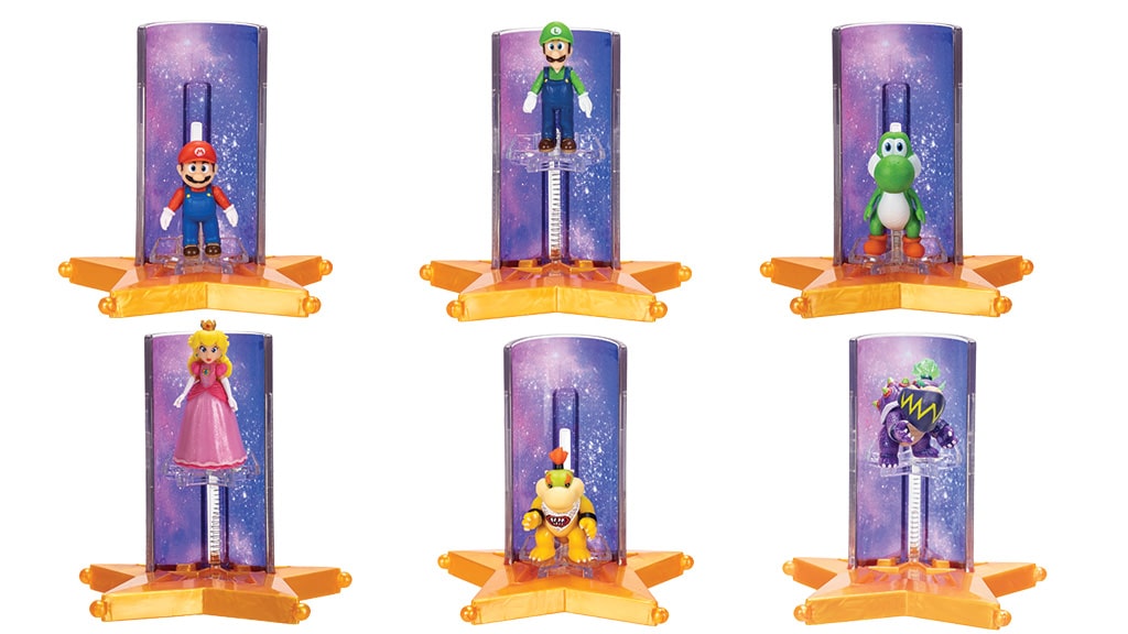 Gyűjtsd össze öt kedvenc szereplődet a Super Mario Galaxy filmből, mindegyikükhöz egy-egy egyedi kiegészítővel! A válogatásban szerepel Mario, aki egy sárga Luma csillaggal érkezik, Yoshi, aki egy imádnivaló álruhát visel, Rosalina a varázspálcájával, valamint Bowser Jr. a jól ismert festőecsetjével. Emellett ne feledkezzünk meg Luigi-ról sem, aki egy különleges zöld sapkát visel, amely még bátrabbá teszi őt a kalandok során. Ez az összeállítás tökéletes választás minden rajongónak, akik szeretik a karakterek egyedi stílusát és kiegészítőit!
