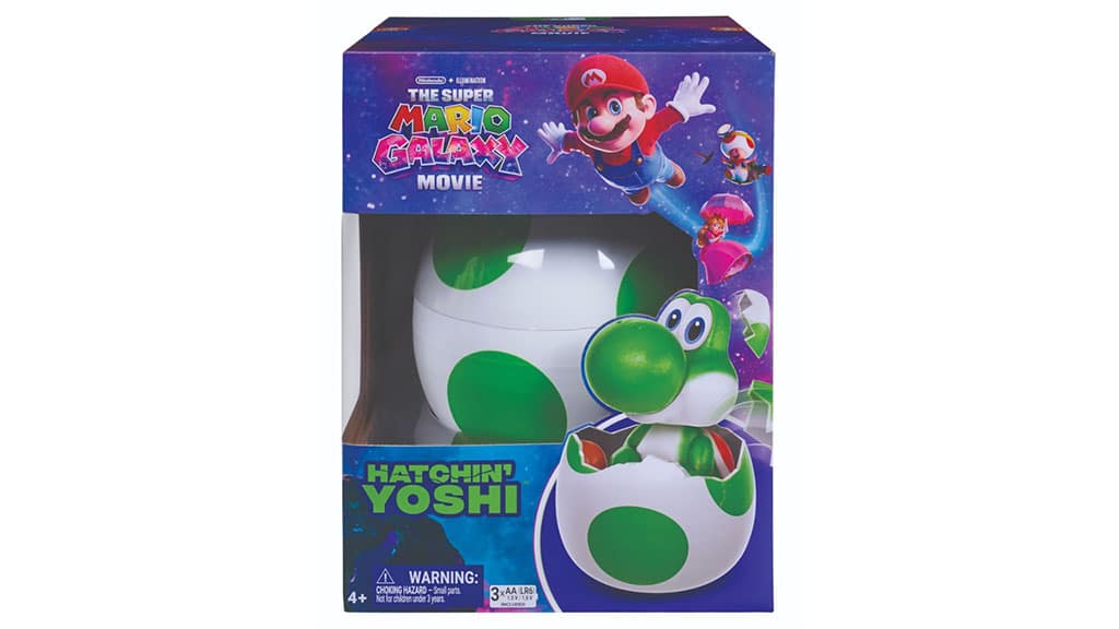 Hatch, játszd végig és állítsd ki a saját, interaktív Yoshi figurádat a vadonatúj The Super Mario Galaxy Movie világából! Mostantól lehetőséged van arra, hogy saját Yoshi barátod legyen, akivel szórakoztató játékokat játszhatsz, különféle reakciókat és hangokat válthatsz ki. Kezdd azzal, hogy megérinted a tojást, kopogtatsz rajta, vagy előre-hátra ringatod. Amint Yoshi készen áll, még több meglepetés és interaktív élmény vár rád! Fedezd fel a közös játék örömét, és élvezd, ahogy Yoshi életre kel a kezeid között!