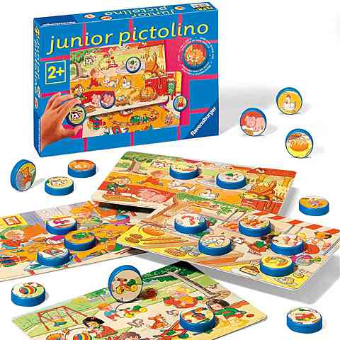 Keresd meg a játéktáblákról hiányzó képrészleteket a korongok között, és illeszd helyére mindet! A Junior Pictolino a legkisebbek kézügyességét s logikáját is fejleszti, amely játékot akár egyszerre többen is játszhatják. Vajon kinek sikerül több képrészletet a helyére illesztenie? Az a játékos győz, akinek hamarabb elfogynak a korongjai és teljes képeket kapott.