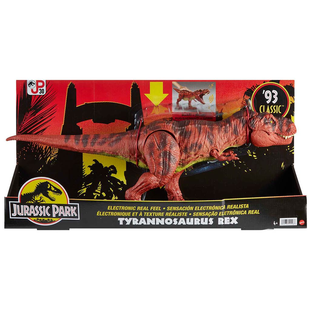 Gondoltad volna, hogy már 30 millió éve bukkantak fel kedvenc őshüllőink a Jurassic Parkban? A Jurassic Park T-Rex fenevad visszarepít az őslények világába, hogy a gyerekek újraélhessék kedvenc történeteiket vagy újakat találhassanak ki. A bestia puha bőre és mintázata az eredetit idézi, így még könnyebben újraélhetik a Jurassic Park fantasztikus varázsát. A T-Rex gombnyomásra félelmetes hangot ad és támadó mozdulatot végez. Rémisztő állkapcsával egyben képes lenyelni a kisebb dinókat, amiket később a hasából lehet kiszabadítani. További Jurassic Park készletekkel a gyerekek még izgalmasabb történeteket játszhatnak el. 4 éves kortól ajánljuk.