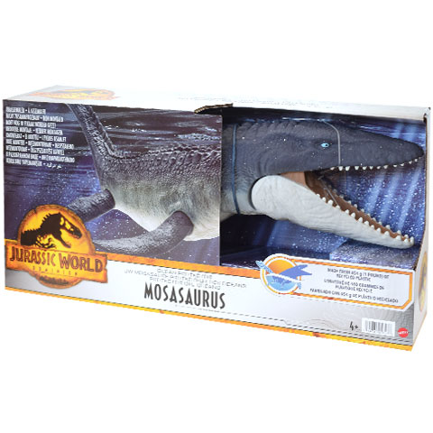 A Jurassic World elvadult szigetén természetesen a vizek sem biztonságosak, hiszen a felszín alatt olyan félelmetes ragadozók várnak prédára lesve, mint a hatalmas Mosasaurus. Ez a lény több mint tizenöt méter hosszúra is megnőhet, és a szájában sorakozó borotvaéles fogak nem éppen növényevő életmódról tanúskodnak. Ez a játék dinoszaurusz több mint hetven centiméteres és tapintásra épp olyan, mintha valódi lenne, amihez a rendkívül részletgazdag kidolgozás is hozzájön, így igazán különleges játékélményt kínál, és felidézheted vele a film legizgalmasabb jeleneteit vagy új kalandokat találhatsz ki.