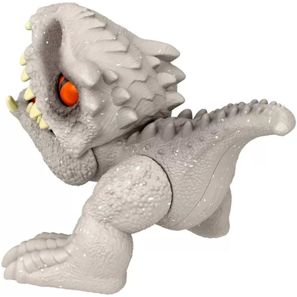 Az Indominus Rex dinóbébi a filmben látott dinoszaurusz stílusos és részletgazdag ábrázolása. Körülbelül 4 cm magas és 7 cm hosszú, így könnyen kezelhető a kis kezek számára. A figura két könnyen aktiválható pózt kínál, amelyekkel a gyerekek interaktív játékba és kalandokba kezdhetnek.