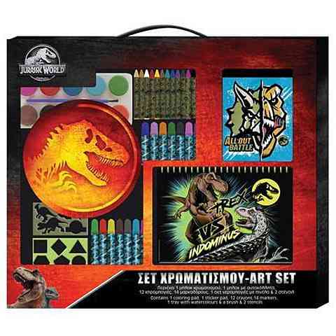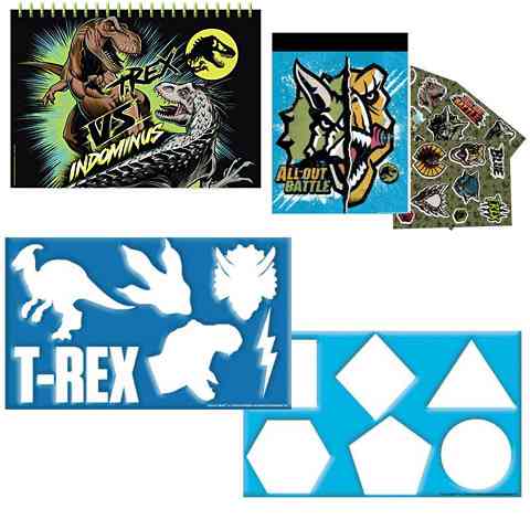 A legkisebb rajongók is könnyedén feleleveníthetik a Jurassic World filmek izgalmas kalandjait és látványos szereplőit, hiszen ebben a kreatív szettben filceket, zsírkrétákat, matricákat és sablonokat is találnak majd a játékhoz. A hatalmas dinoszauruszokat megfesthetik a vízfesték palettával, de más alakzatokat is rajzolhatnak a sablonok segítségével. A nagy kreatív szettel izgalmas és látványos játék vár a gyerekekre.