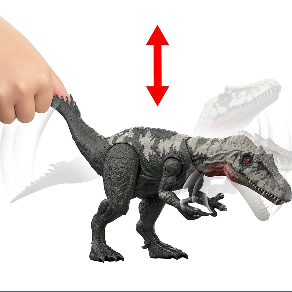 A Chilantaisaurus masszív kialakítású, erőteljes testfelépítésű dinó, amely már ránézésre is tiszteletet parancsol. A sötét, természetes árnyalatú festés és a texturált bőrfelület még élethűbbé teszi, így a játék közben könnyű beleélni magunkat a Jurassic World izgalmas világába. A figura különlegessége az óriás támadó funkció, amelyet a farok vagy a test mozgatásával lehet aktiválni: a dinó látványos támadó mozdulatot végez, miközben félelmetes hangokat ad ki, ezzel még intenzívebbé téve a játékélményt.