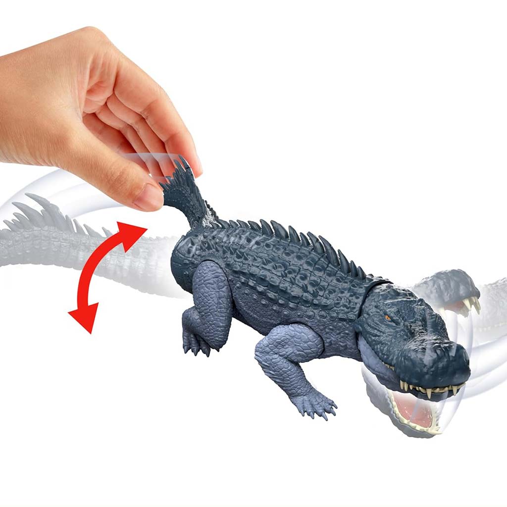 A Jurassic World: Óriás támadó Purussaurus dinó hanggal egy lenyűgöző, nagyméretű akciófigura, amely a Jurassic World univerzum egyik legfélelmetesebb ősi ragadozóját kelti életre. A Purussaurus egy hatalmas, krokodilszerű őslény volt, és ez a figura tökéletesen visszaadja erejét, méreteit és fenyegető megjelenését – igazi főszereplője lehet bármely dinoszauruszos játéknak.