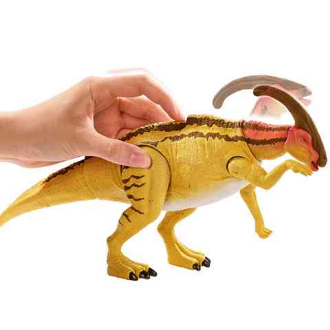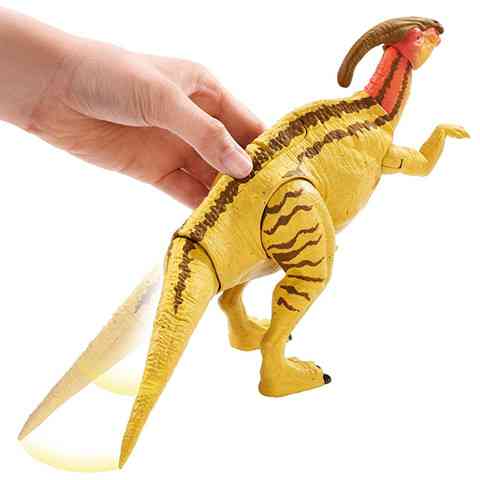 A Parasaurolophus egy olyan dinoszaurusz, ami pont a Jurassic filmeknek köszönheti a hírnevét és a népszerűségét, hiszen korábban egy kevésbé érdekes őslény volt, de a filmeknek köszönhetően, mára már minden gyerek és persze felnőtt megismeri a különleges fejdíszéről. A nagyszerű figura a film alapján készült, hogy a lehető legjobban hasonlítson a filmben látható őslényre, ráadásul a mozgatható végtagok és a kinyitható száj külöbféle beállításokat is lehetővé tesz. A hátán lévő gomb megnyomásával pedig támadásra tudjuk sarkallni, legyen szó a félelmetes pofájáról vagy az izmos farkáról. A Mattel Jurassic World figurái mind kidolgozásában, mind festésében követi a filmet, így a gyerekek könnyen felidézhetik általuk a film legjobb jeleneteit, vagy új kalandokat találhatnak ki a dinoszauruszok számára.
