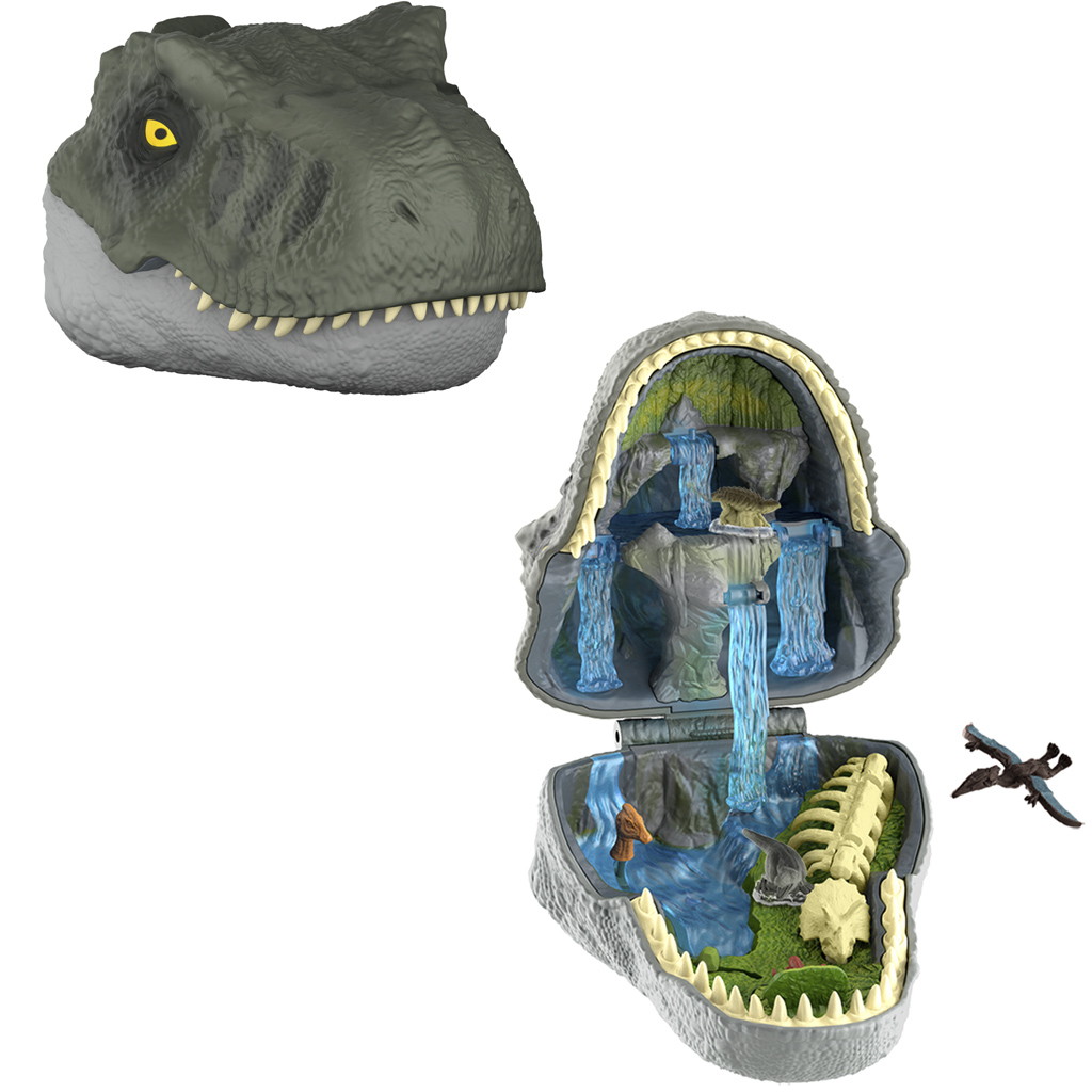 Fedezz fel egy teljes dinoszaurusz kalandvilágot a tenyeredben a Jurassic World: Újjászületés Micro Adventures T-Rex mini játékszettel! Ez a különleges készlet a legendás Tyrannosaurus rex fejformájú tárolóban rejtőzik, és kinyitva egy izgalmas, több szintes őskori helyszín tárul fel vízesésekkel, csontvázakkal és apró dinófigurákkal. Kiváló választás minden kis kalandor számára, aki imádja a dinoszauruszokat és a részletgazdag, fantáziadús játékvilágokat.