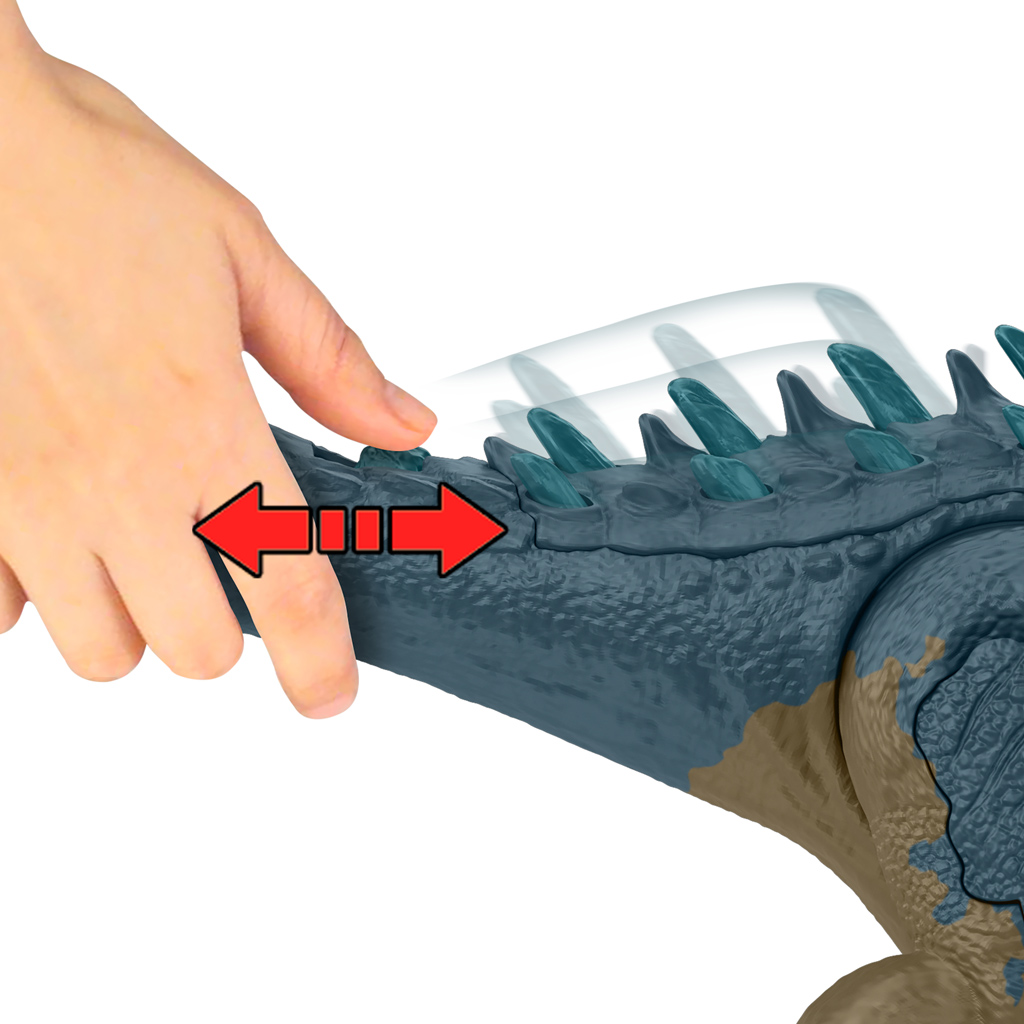 Félelmetes fegyverzettel és fejlett harci készségekkel rendelkezik a hátán lévő kereket mozgatva a gyerekek aktiválhatják a támadó funkciót, fel-le mozgatják a fejüket és rémísztő harciüvöltést hallatnak, a farkán lévő gombbal pedig a tüskéket aktiválhatják. A mozgatható végtagok, a valósághű kinézet és díszítés még élethűbbé és átélhetőbbé teszik a játékot.
