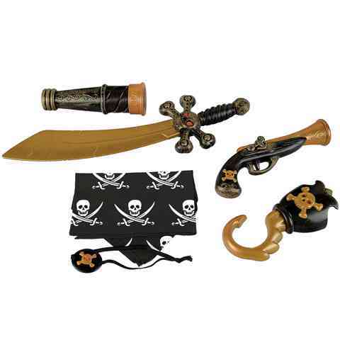 Tartalom: Kard, távcső, fejkendő, pisztoly, kampókéz, szemellenző