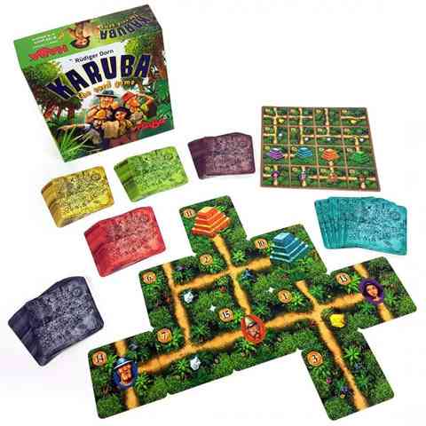 A Karuba név már ismerős lehet a tapasztalt játékosoknak, hiszen társasjáték formájában családi és gyerekeknek szánt változatban is találkozhattak már vele. A téma nem változott a kártyajátékban is a játékosoknak az a célja, hogy a dzsungel sűrűjében ráleljenek a keresett templomra és a lehető legtöbb kincset gyűjtsék össze. 16 kártya, ösvények és útkereszteződések, számtalan lehetőség. A Karuba kártyás verziója rövidebb és pörgősebb játékot nyújt, de a fejtörés megmaradt: ki tudja a legügyesebben összeilleszteni a saját kártyáit, és ezzel a legtöbb kincset megszerezni? A Karuba kártyajáték méltán kapta meg a rangos Év játéka jelölést.