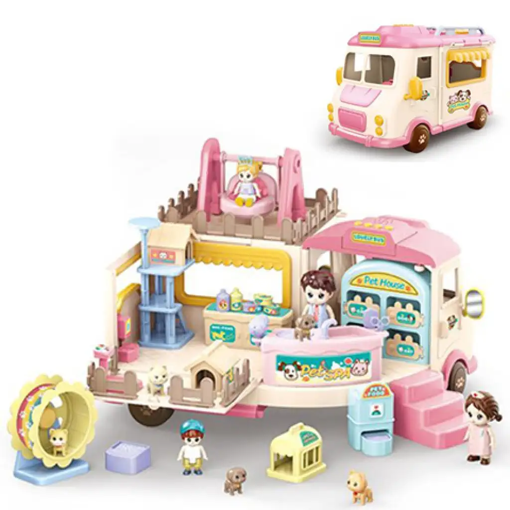 Katie ezúttal egy különleges babaházat hozhat el gyermeked játékbirodalmába, amely hang effektekkel is rendelkezik és egy szempillantás alatt a rózsaszín-fehér színű nagy méretű furgont babaházzá alakíthatja és már kezdődhet is a játék! A szettben számos kiegészítő is helyet kapott amelyek egy babaházban nélkülözhetetlen kellékek lehetnek. A játék végeztével könnyedén összecsukható újra furgonná és így kényelmesen hordozható, akár egy kirándulás során is magával viheti gyermeked újdonsült kedvenc játékát.