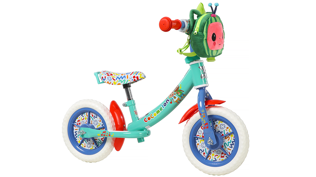 Ez a bicikli egy élénk türkiz, lila és piros színösszeállítással rendelkezik, amelyet CoComelon-inspirálta eredeti grafikák díszítenek a vázon, valamint konfetti mintázat található az ülésen. A biciklihez tartozik egy levehető kormánytáska is, amelyben a gyerekek tárolhatják a holmijukat útközben. Ez a táska rendkívül praktikus, hiszen a gyerekek kedvenc játékaikat vagy egyéb fontos tárgyaikat is magukkal vihetik. A bicikli kialakítása nemcsak esztétikus, hanem funkcionális is, így tökéletes választás minden kisgyermek számára.
