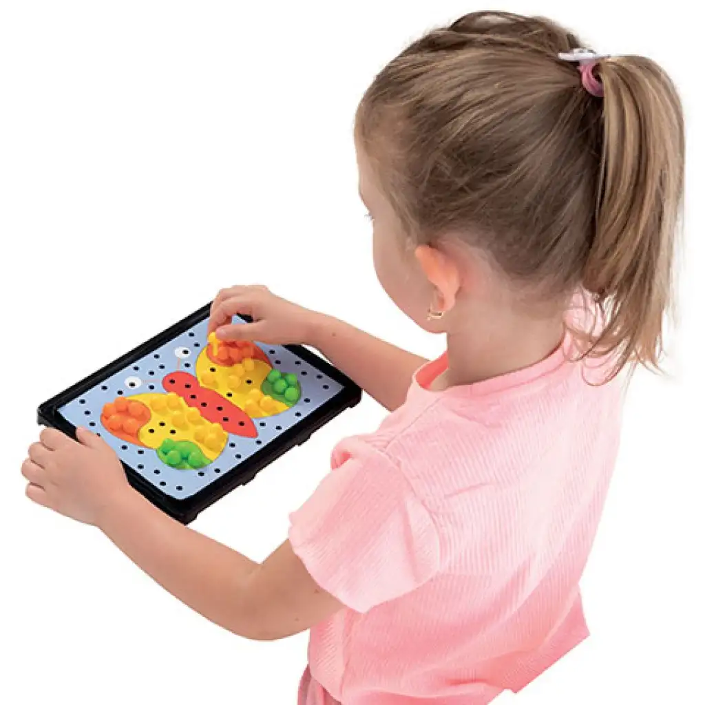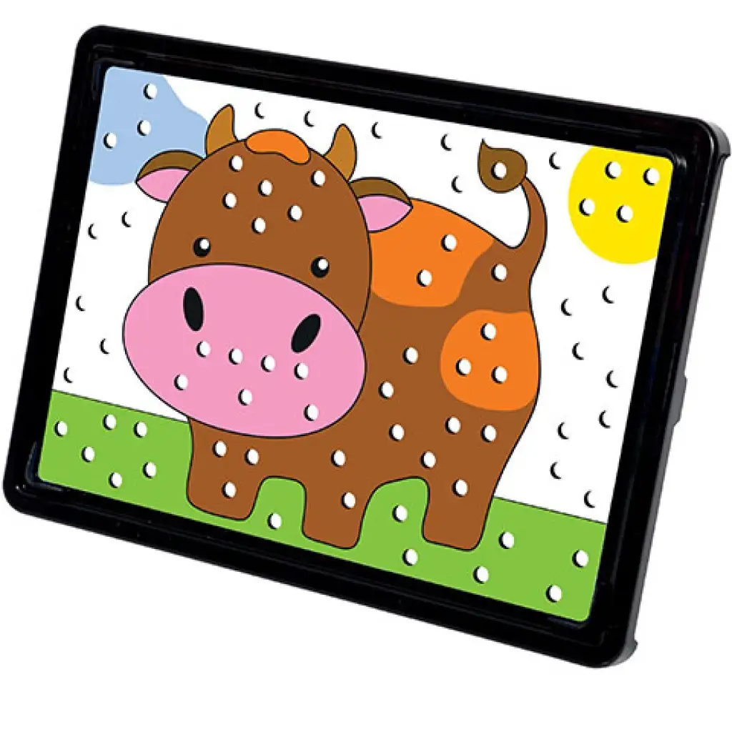 A gyerekek imádják a tanyavilágot, az ott található sokféle állatnak köszönhetően, így ennek a mozaik beillesztős játéknak is garantáltan hatalmas sikere lesz, hiszen a képeken különféle állatokkal találkozhatnak a kicsik. A Képes mozaik játékcsalád kifejezetten a három éves gyerekek számára lett fejlesztve, ennek megfelelően a színes gombok tizenkét milliméteres átmérővel rendelkeznek, így a gyerekek kényelmesen tudják őket kezelni, ráadásul a használatukkal fejlődik a finom-motorikus készségük és a kreativitásuk is.