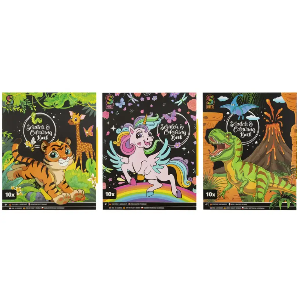 Hívogat az alkotás csodálatos világa ezekkel a képkarcoló és kifestő lapokkal, melyek a képzelet és a kreativitás szárnyalásához kínálnak lehetőséget! Válassz a dzsungel tigris, a varázslatos unikornis vagy a kalandos dinoszaurusz témájú változatok közül, és adj életet a képeknek a kaparó toll segítségével. A lapok egyik oldalán a finom karcolással előbukkanó színváltó felület teszi lehetővé a művészeti alkotások megjelenését, míg a másik oldal színezőfelületet kínál a gyermekek számára. Egyedülálló kettős funkció, amely fejleszti a finommotorikát és a koncentrációs képességet is.