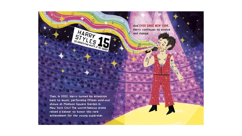 Az illusztrált, költségkímélő könyv követi az énekes útját a sztárságig, utalva az The X Factor című műsorban töltött idejére, a One Direction tagjaként, valamint olyan filmekben, mint a Dunkirk. Harry Styles rajongói minden korosztályból felismerhetik a különböző dalcímeket, amelyek a történet során felbukkannak! A könyv nemcsak a zenei karrierjét mutatja be, hanem betekintést nyújt a személyes életébe és a művészi fejlődésébe is, így még közelebb hozva az olvasókat az ikonikus előadóhoz.