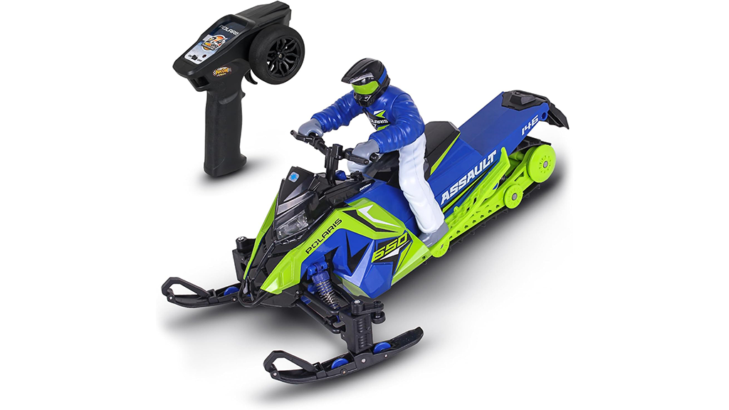 Hódítsd meg a havat, füvet, földet és még sok más terepet az hivatalosan engedélyezett, teljesen működőképes, rádió-távirányítású Polaris Switchback Assault crossover hómobil segítségével! A modellhez kétféle, cserélhető síkészlet tartozik: egy sima szett a hóhoz, valamint egy kerekekkel ellátott szett, amely szinte bármilyen más terepen is használható. Világítsd meg az utat a működő fényszórókkal! Küzdj meg az akadályokkal, ugratókkal és egyenetlen felületekkel, miközben élvezed a kalandot ezzel a lenyűgöző járművel!