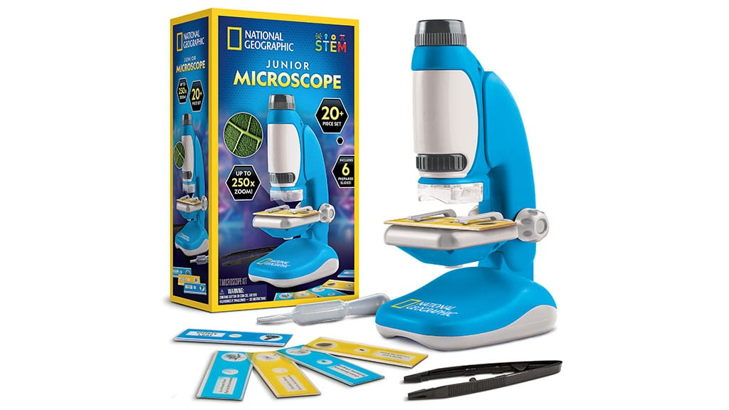 Ez a mikroszkóp 250-szeres nagyítással, felső és alsó megvilágítással, valamint levehető okulárral rendelkezik. A gyerekek saját mintákat is gyűjthetnek, vagy használhatják a hat előre elkészített növényi metszetet, hogy közelről megvizsgálják például a fenyő pollent, a pitypangmagot és még sok más érdekességet. Ez a mikroszkóp ideális eszköz a természet felfedezéséhez és a tudományos kíváncsiság fejlesztéséhez, miközben játékos módon tanulhatnak a gyerekek a mikroszkopikus világ csodáiról.