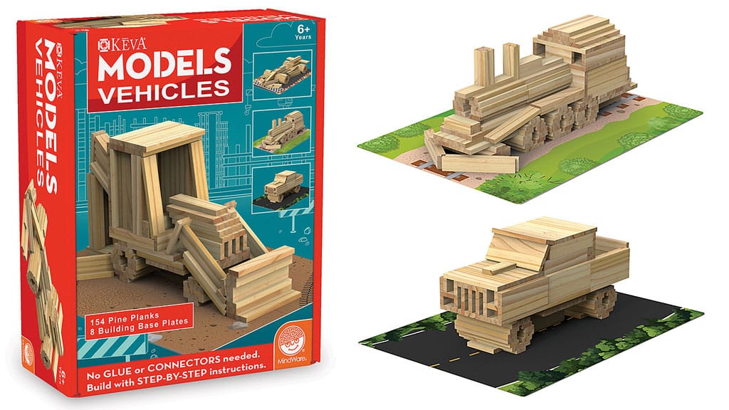 A gyerekek négy különböző fa járművet építhetnek meg – gőzmozdonyt, markolót, versenyautót és platós teherautót – több mint 150 precízen vágott KEVA építőelemből. Ragasztóra vagy csatlakozókra nincs szükség. Ez a STEM-barát készlet tartalmaz alaplapokat és egy útmutató füzetet, amely ösztönzi a kritikus gondolkodást és a kreativitást, miközben a gyerekek építenek, szétszednek és újraalkotnak, így órákon át tartó, kézzel fogható szórakozásban lehet részük. A készlet fejleszti a finommotorikus készségeket, a problémamegoldó képességet és a térbeli gondolkodást is, miközben a gyerekek játékosan ismerkednek a mérnöki alapelvekkel és a kreatív tervezéssel.
