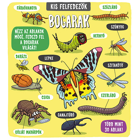 Itt a nagyszerű lehetőség, hogy a kis felfedezők most igazán elmélyüljenek a bogarak világában! Nézzük meg alaposabban a legtekergősebb, legmászósabb, legijesztőbb és leggyönyörűbb rovarokat! Az ablakok alatt még több érdekes információt találhatsz a bogarakról. Rengeteg felfedeznivaló és izgalmas információ vár a kíváncsi gyerekekre. A Kis felfedezők sorozat az öt éves korosztály számára készült, és a számukra izgalmas formában igyekszik a lehető legérdekesebb információkkal ellátni őket a legkülönfélébb témákban. Keresd áruházunk kínálatában a Kis felfedezők sorozat többi kötetét is!