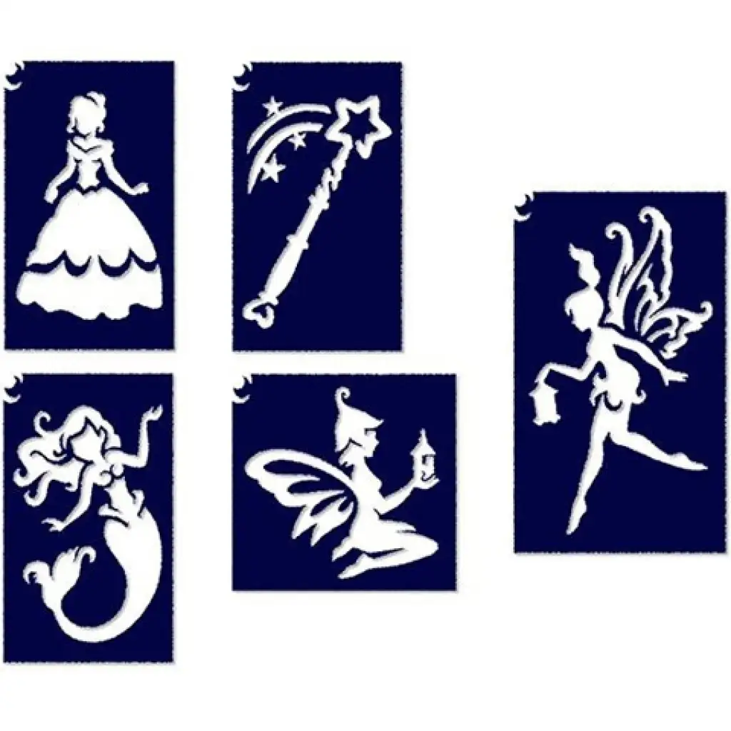 A TyToo a legkisebb lányokra is gondolt a csillámtetoválások terén, és ebben a csomagban a száukra válogatott össze öt olyan sablont amelynek segítségével tündérkés, hercegnős vagy éppen egy kis hableányos mintát lehet elkészíteni. A TyToo sablon készleteinek köszönhetően a gyerekek a legváltozatosabb minták alapján készíthetnek maguknak csillámtetoválást, hiszen a sablont feltéve, csak át kell kenni azt ragasztóval, és megszórni a megfelelő színű csillámporral, és a sablon mintája máris a bőrt díszíti.