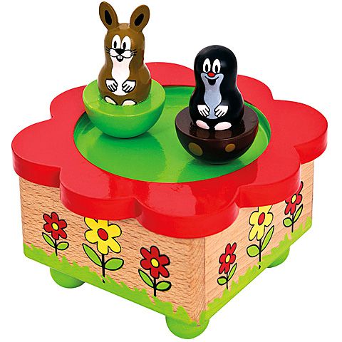 Hallgasd a zenét ami ebből a szuper kis zenedobozból jön! A Kisvakond meséből mér is mert figurák a zenedoboz tetején ülnek, így adva különleges hangulatot a játékhoz. A színes, kizárólag fából készült kis zenedoboz a szoba dísze is lehet, azonban a gyerekek a lejátszható dallam miatt is kedvelni fogják. Zenélj együtt Kisvakonddal és nyuszi barátjával!