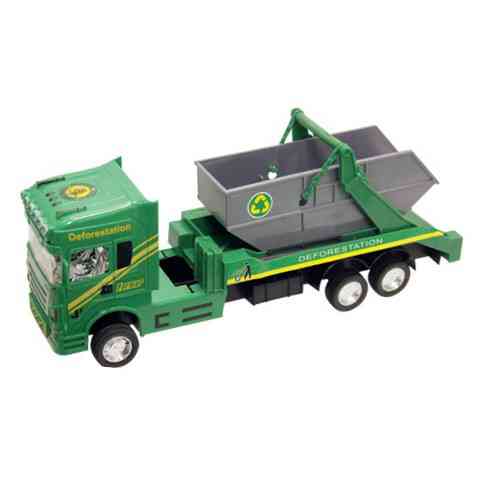 A hulladékszállítás egyik legegyszerűbb és leggyorsabb módja az, ha a helyszínen a törmelékeket és szemetet egy hatalmas konténerbe teszik, melyet aztán egy erős teherautó a platójára emel és a rendeltetési helyére viszi. Most itt a lehetőség, hogy eljátszd a szállítás ezen nagyszerű módját ezzel a rendkívül látványos teherkocsival, melyen egy konténer is helyet kapott, amit le/fel emelhetsz. Elég csak beleakasztani a láncokat a konténer oldalába és már indulhat is a daru, ami felemeli.