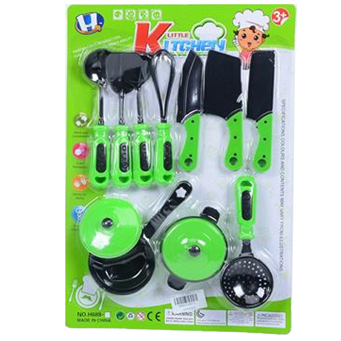 A gyerekek szeretnek felnőttes dolgokat eljátszani, és ez alől a főzés sem kivétel, de szerencsére ezzel a készlettel remekül főzőcskézhetnek a saját kis játék konyhájukban. A csomagban minden konyhai eszköz megtalálható, amivel a kicsik el tudják játszani a sütés és főzés folyamatát. A készletben tésztaszűrő, serpenyő, és egy lábos az amiben sütni főzni lehet, de persze a csomag tartalmaz játék késkészletet és minden hasznos eszközt a habverőtől a forgatólapátig vagány neon-zöld és fekete színekben.
