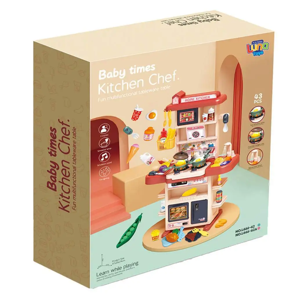 Fedezd fel a gasztronómia világát ezzel a lenyűgöző piros konyhai játékszettel! A szett 43 darabból áll, ami minden kis szakács számára lehetőséget biztosít arra, hogy igazi konyhai élményeket éljen át. Főzz, süss, és készíts mennyei ételeket ebben a teljesen felszerelt miniatűr konyhában! A készlet minden részletével elvarázsol: legyen az evőeszköz, valamilyen edény vagy bármi más, minden darabja hűen utánozza a valóságos konyhai tárgyakat. A piros színű kivitelezés pedig még izgalmasabbá és vonzóbbá teszi a játékot, hozzáadva egy csipetnyi eleganciát és stílust a játékhoz. A kiváló minőségű anyagokból készült játékszett hosszú távú szórakozást és tanulást nyújt a gyerekeknek, miközben fejleszti kreativitásukat és kézügyességüket. Egy ilyen teljesen felszerelt konyhai játékszett garantáltan órákon át tartja a gyerekek figyelmét, miközben megismerik az ételkészítés alapjait.