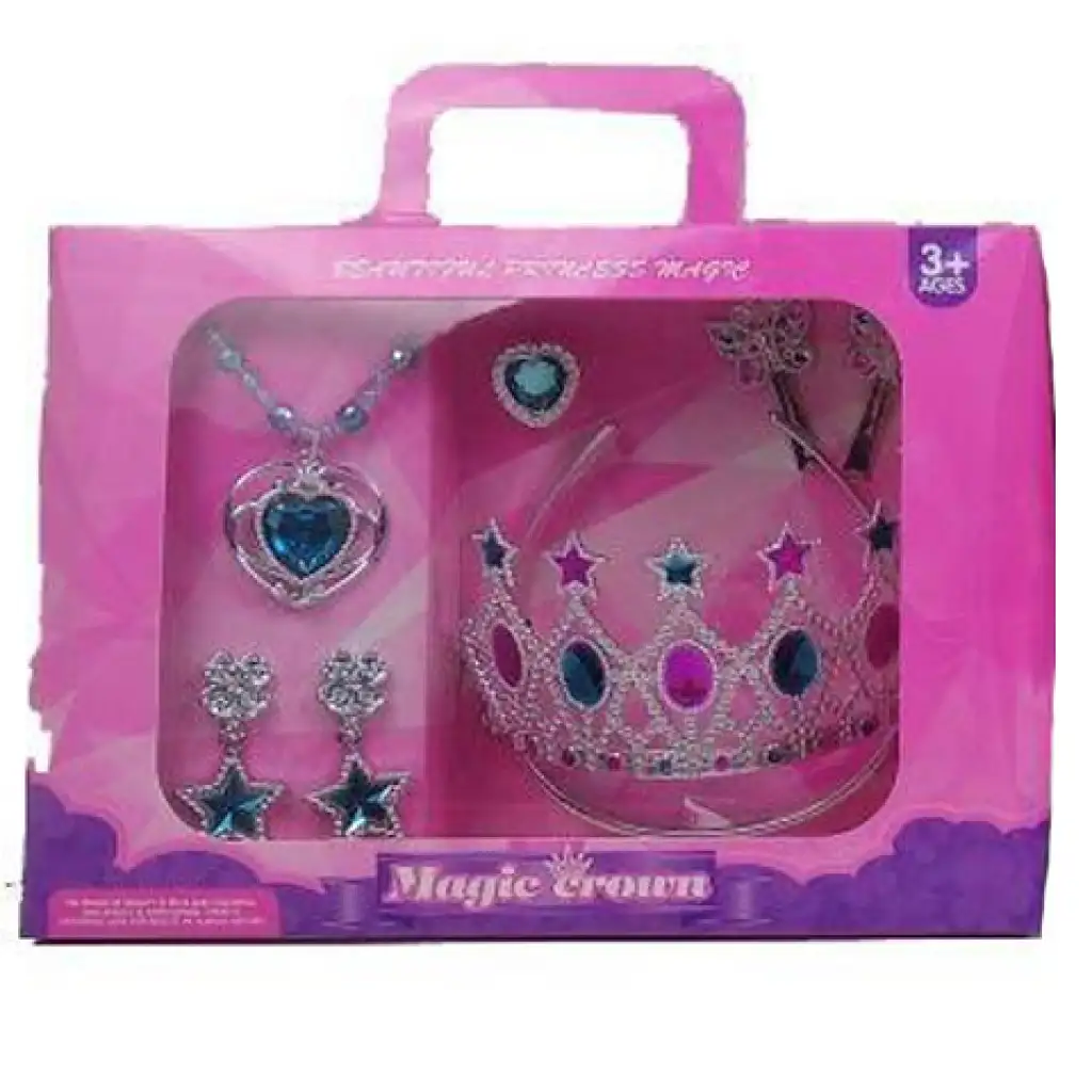 Talán nincs is olyan kislány, aki a jelmezbálon legalább egyszer ne királylány, vagy hercegnő szeretne lenni. A csodaszép ruhácska mellé azonban néhány igen mutatós kiegészítőre is szükség lesz, hogy valóban meglegyen a hercegnő élmény. Szerencsére ebben a csomagban minden adott ahhoz, hogy az előkelő ruha mellé mutató és sziporkázó ékszerek kerüljenek a fülbevalóktól kezdve a nyakláncon keresztül természetesen a csillagokkal és ékkövekkel díszített koronáig.