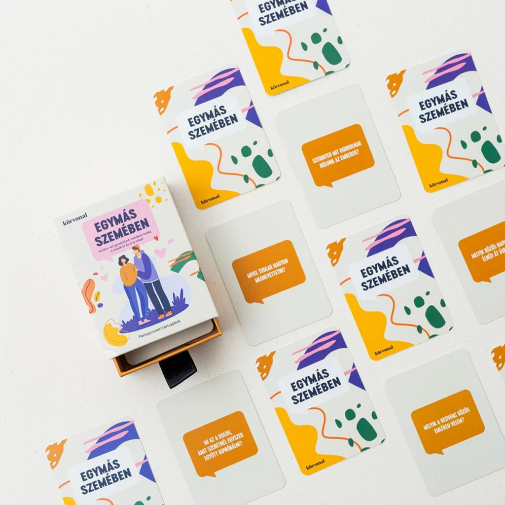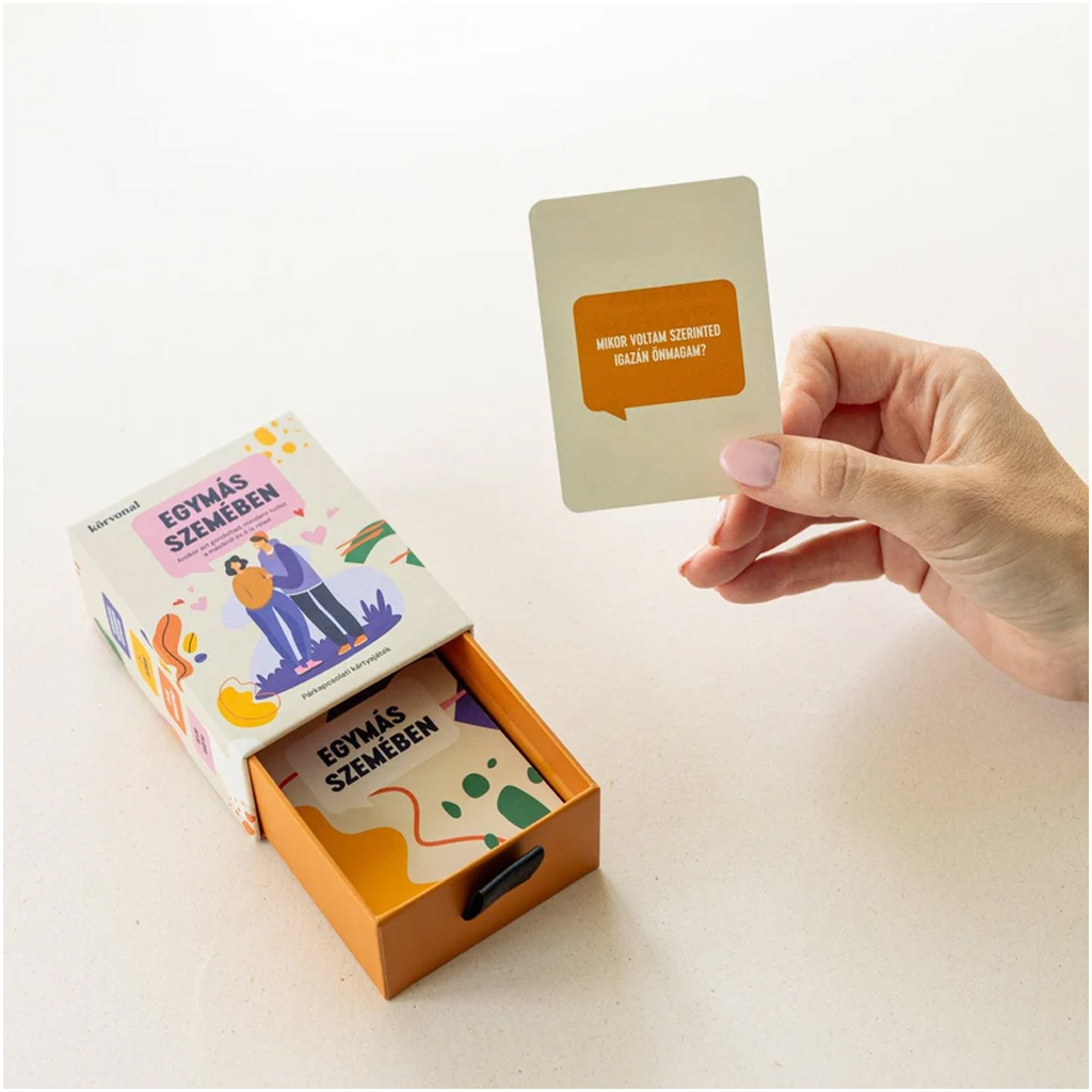 A Körvonal – Egymás szemében tökéletes egy közös vacsora után, hétvégi elcsendesedéshez vagy akár egy utazás során. Nem versenyről szól, hanem rólatok – egymás figyelmes meghallgatásáról és arról, hogy megerősítsétek, miért vagytok jó helyen egymás mellett.