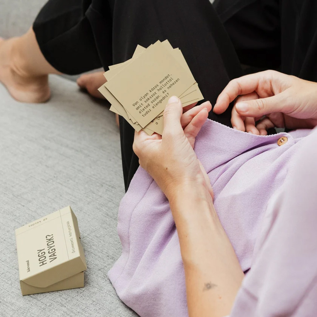 Ez a játék nem a klasszikus értelemben vett társasjáték, hanem inkább egy eszköz. Egy önreflexiós tér, ahol biztonságosan elmerülhetsz abban, ami benned zajlik. A kérdések egyszerre egyszerűek és mélyek, nem rávezetnek, hanem meghívnak – hogy gondolkodj, érezz, és talán máshogy nézz rá a saját helyzetedre. Például: „Mi az a teher, amit már ideje lenne letenned?”, vagy „Milyen új dolgot szeretnél megtanulni?”.