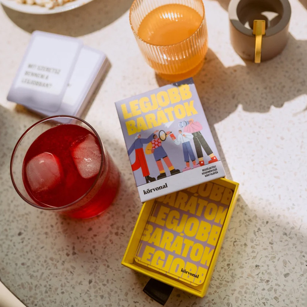 A Körvonal – Legjobb Barátok egy szórakoztató, mégis mély beszélgetéseket indító kártyajáték, amit kifejezetten barátoknak terveztek. Tökéletes program egy délutáni találkozóhoz, egy közös hétvégéhez, vagy akár egy hosszabb utazáshoz is. A cél egyszerű: jobban megismerni egymást, röhögni, nosztalgiázni, vagy éppen új oldaláról látni azt, akivel már évek óta barátok vagytok.