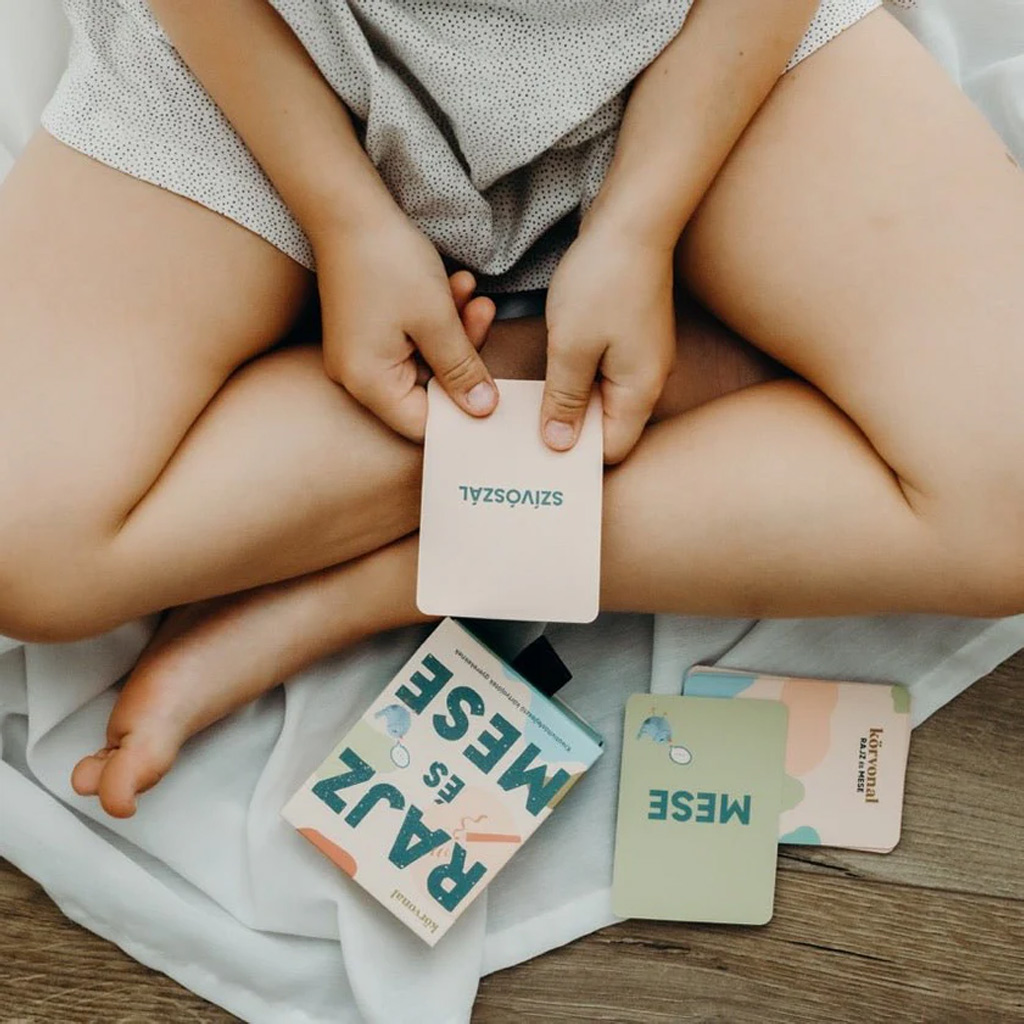 A játék menete nagyon egyszerű: a gyerekek húznak egy kártyát, amin egy szó szerepel – például „szivárvány”, „esernyő” vagy „húsvéti nyuszi”. Ezután eldönthetik, hogy rajzolni vagy mesélni fognak róla. A Rajz vagy Mese kártyák véletlenszerű választása külön izgalmat ad, hiszen nem mindig az történik, amit előre elterveztek. Így nemcsak a kreativitás, hanem a rugalmasság és a spontaneitás is fejlődik.