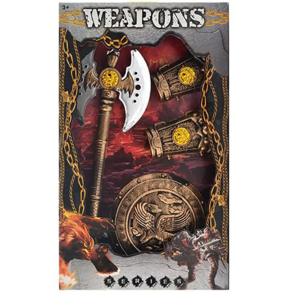 Egy részletgazdag kidolgozottsággal rendelkező középkori bárdot, pajzsot és kézfejvédőt szerezhetsz be gyermeked számára amelyek használatával egy igazi harcos bőrébe bújhat és felveheti a harcot az ellenséges katonákkal szemben. A készletben egy különleges, hatalmas karmokkal rendelkező kézfejvédő is megtalálható amely a közelharcban rendkívül hatékony. A középkori történetek kiválóan megmozgatják a gyermekek fantáziáját és játékosan élhetik bele magukat a csatákba és összecsapásokba. A szerepjáték mozgásra ösztönöz és serkenti a gondolkodást és fejleszti kreativitást. A szettben található kiegészítők strapabíró műanyagból készültek, amely hosszútávú használatot eredményezhetnek.