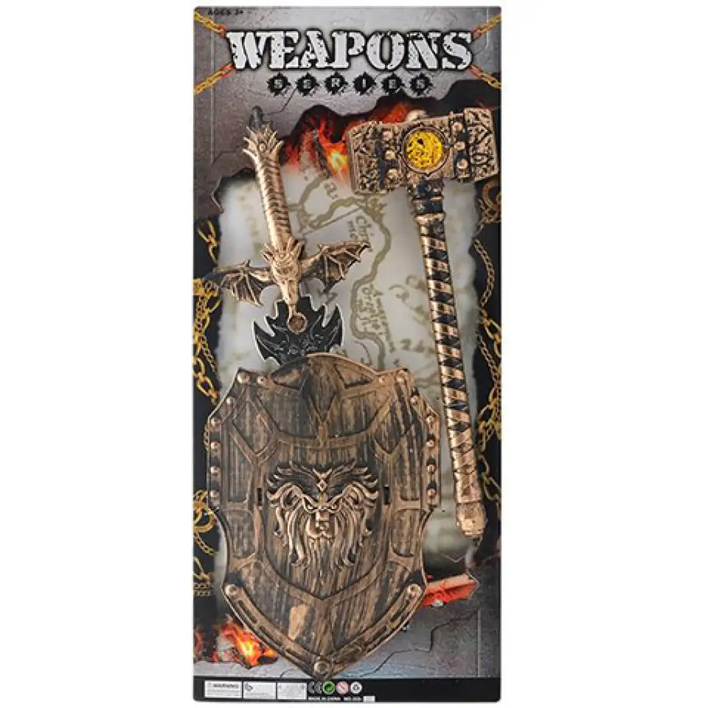 Középkori kalapács pajzzsal és karddal 3db-os szett