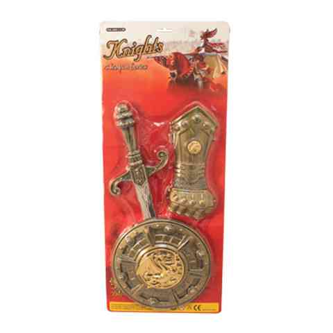 A középkori lovagi kard, pajzs és alkar védő szett a fantázia világának szárnyakat ad. A középkorba repíti a gyermeket, igazi csatákat vívhat meg, melyek felkeltik érdeklődését az ókor, középkor, a történelem iránt. A szett nem csak fiúknak jó játék, hiszen vannak harcos nők is a fantázia világában. A szett részletgazdagsága, mesebelisége minden igényt kielégít, amire egy gyermek vágyik.