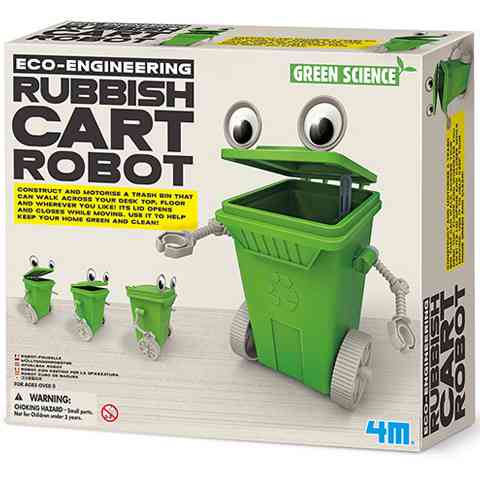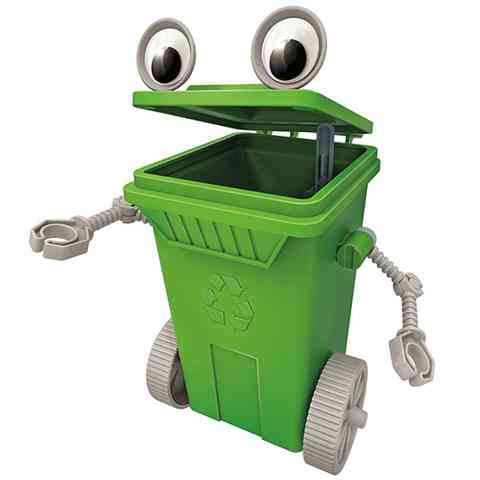 Egy jópofa kis kuka robotot építhetsz magadnak, ami nem csak arra alkalmas, hogy a keletkező szemetet tárold benne, hanem egy kapcsolásra életre is keltheted. A készletben mindent megtalálsz, amivel szépen össze tudod szerelni ez a mókás kuka robotot. A kuka a klasszikus szelektív hulladékgyűjtő alapján készült és zöld színű. Az útmutató alapján szereld össze az elektromos motort a kapcsolóval és a tengellyel és a kerekekkel. Ezután készre építheted a kukát, és csak be kell kapcsolnod, a kuka pedig máris elkezd gurulni a kerekein, és még a fedelét is nyitogatja.