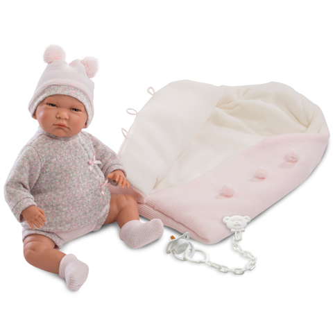 Lala baba egy rózsaszínű hálózsákban érkezik meg hozzád, csodaszép díszdobozában. Részletgazdag, és élethű kialakításának köszönhetően biztosan a kedvenced lesz, hiszen olyan, akárcsak egy igazi baba. Lala egész teste lágy műanyagból készült, ami igazán puha tapintást nyújt, és ez is nagyon hasonló az igazi bőr felületéhez. Kötött ruhácskájában és sapkájában nagyokat tud majd aludni, hiszen nagyon puha, és prémium minőségű, köszönhetően a kézzel készített eljárásnak mind a ruha és a baba esetében. Ha kisbabád sírni kezd, csak tedd a szájába a cumiját, és ezzel megnyugszik majd.
