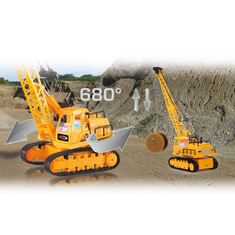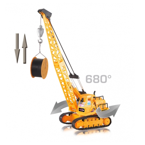 A daru lánctalpakon gurul, így a terepen is remekül boldogul. Előre-hátra vezérelhető és természetesen kanyarodik is. Ha elérted a rakodás helyszínét, a daru segítségével megkezdheted a tárgyak emelését. A daru rész körbe forog és le-fel emelhetsz vele dolgokat, mint a készletben található kábeldob. A távirányítóról minden funkció kényelmesen vezérelhető és a vezetőfülkében még LED világítás is van.