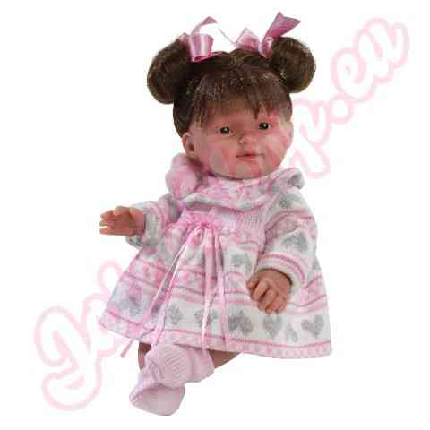 Lány baba barna hajú szívecskés ruhában 26cmLány baba barna hajú szívecskés ruhában 26cm