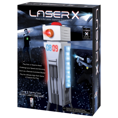 A Laser-X új fejezetet nyit az interaktív csaták történetében a fantasztikus Gaming Tower-rel! Ez a különleges torony lehetővé teszi, hogy még szórakoztatóbb legyen a játék kedvenc lézerfegyvereitekkel egyedül, vagy akár párban is. A torony érzékeli a találatokat és lőni is tud, így együtt gyakorolhatsz vagy játszhatsz vele. A színes fényjelzők nem csak mutatják, de számolják is a találatokat és mindig visszajelzést adnak a sikeres vagy sikertelen lövésekről. Összesen 10 játékmódot próbálhattok ki a Laser-X Gaming Tower segítségével, mely gondoskodik róla, hogy mindig szórakoztató legyen a csata. A Laser-X Gaming Tower szett mellé szükséged lesz egy vagy két Laser-X lézerfegyverre, melyek külön kaphatóak.