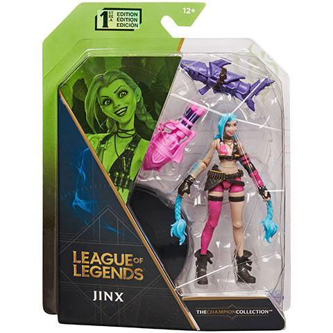 Jinx egy mániákus, lobbanékony zauni bűnöző, aki imád rombolni, és fittyet hány a következményekre. Halálos fegyverek sorát hordja magánál. A lehető leghangosabb lövések és a legfényesebb robbanások közepette kelt káoszt és pánikot. Jinx utál unatkozni, és amerre jár, a csak rá jellemző káoszt hagyja hátra. A Spin Master League of Legends figurái a népszerű számítógépes játék alapján részletgazdag kidolgozással és a képernyőkön látható színezéssel készültek, a mozgatható végtagok pedig különféle beállításokat tesznek lehetővé, így játékra épp úgy remek ajándék, mint a rajongók gyűjteményébe.