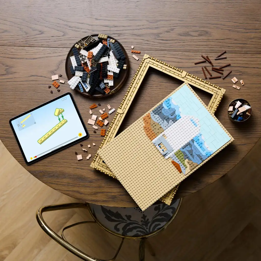 • Ünnepeld a mesterművet– Ehhez a LEGO® Art szetthez egy építési útmutatót tartalmazó füzet is jár, és ha beszkenneled a QR-kódot, meghallgathatod az izgalmas tartalommal teli, a festmény időtlen varázsát megörökítő hanganyagot