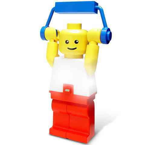 Lego bányászlámpa 279 mm magas Lego emberkével. Forgatható karokkal. Könnyen kézben szállítható. Erős, gyenge, vészhelyzet világítással.